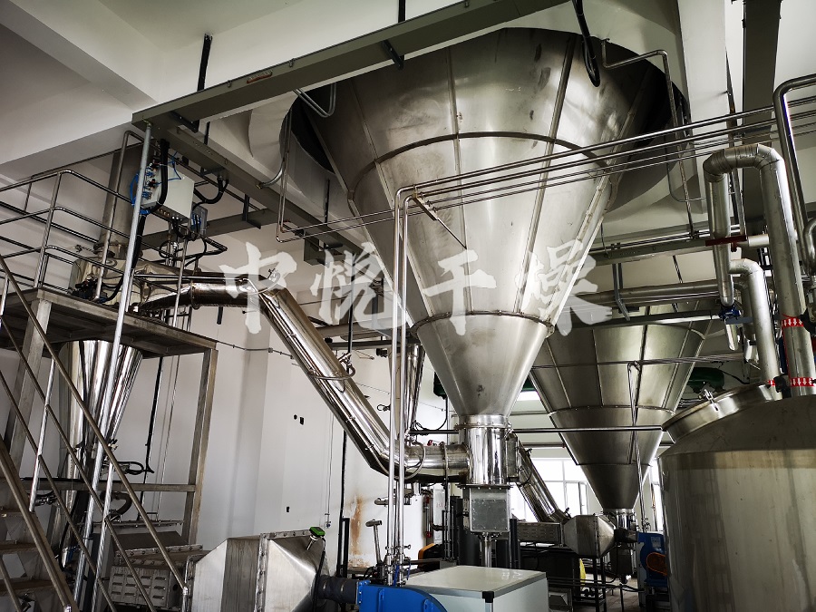 中药浸膏是由植物根茎叶提取而成,特别是醇提工艺,它含糖份较高,在高温下易软化熔融,普通的离心喷雾已无法满足干燥,针对这种情况我公司组织了一批精干的技术力量,总结出几年来本厂设计制造喷雾干燥机的成功经验,收集了国内外同行业同类型产品的优点,经过精密、反复的工艺计算和无数次的实验,开发出了中药专用喷雾干燥机组,并推广到了一些知名药厂使用。